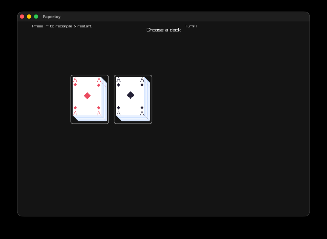 By default, papertoy will run to the next turn if there are no actions for the player to take. Sometimes we want the player to be able to go to the next turn when they are ready. Unselecting 'Always run the next turn automatically' will make it so a player has to click a 'Next Turn' button, before the next turn runs.